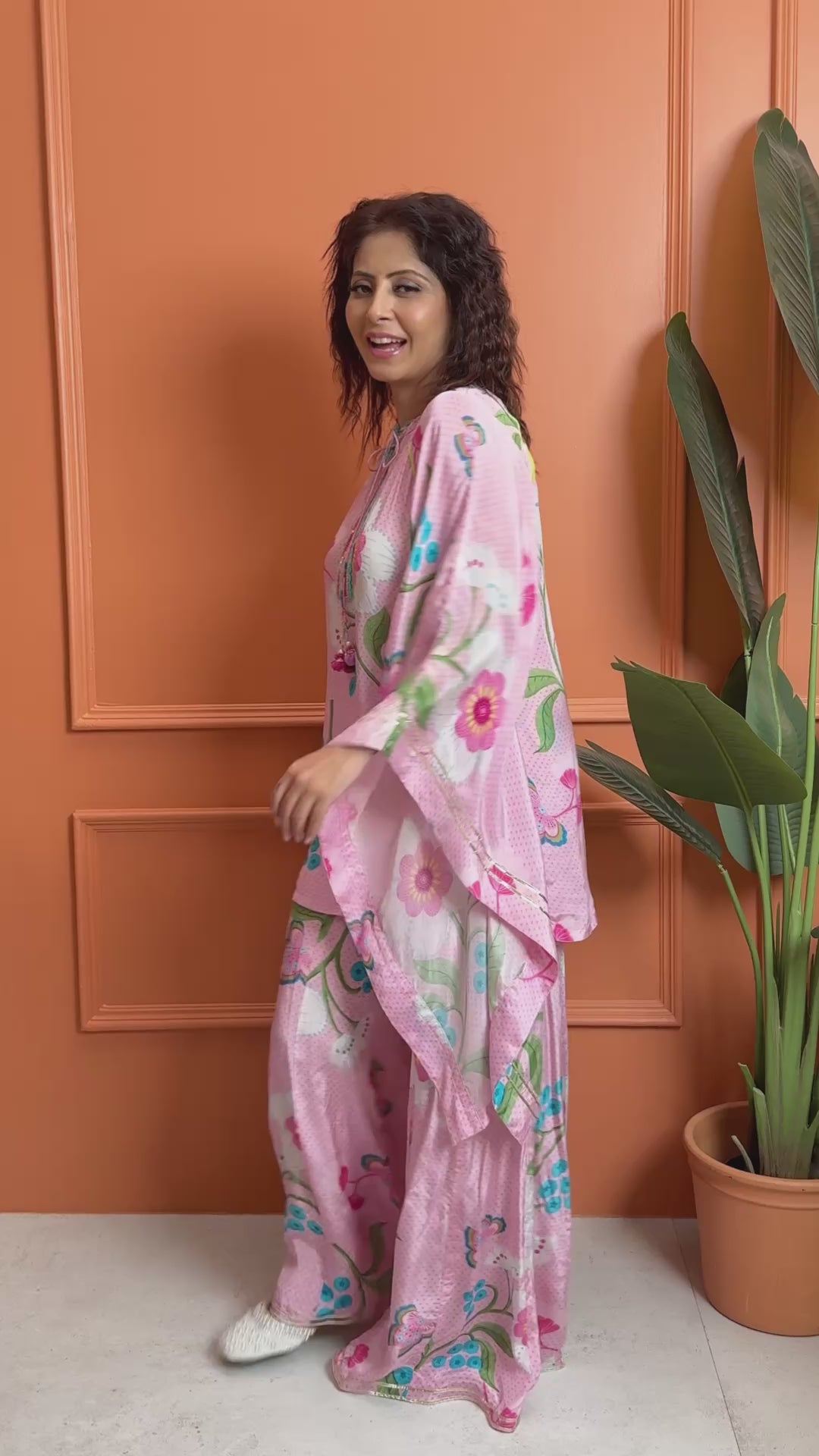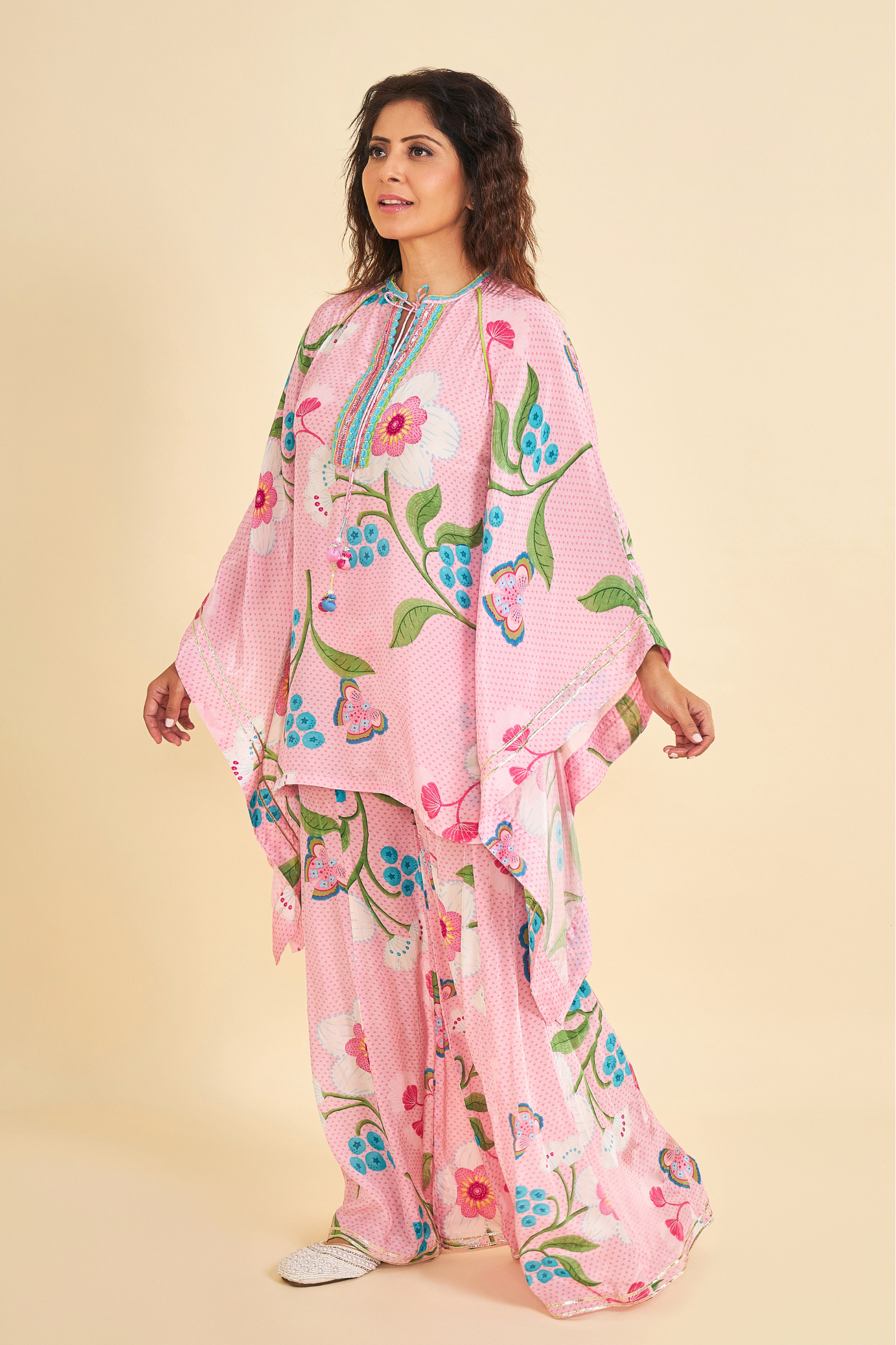 - Printed Set: Kaftan-Style Tunic & Flared Palazzo Pants.
