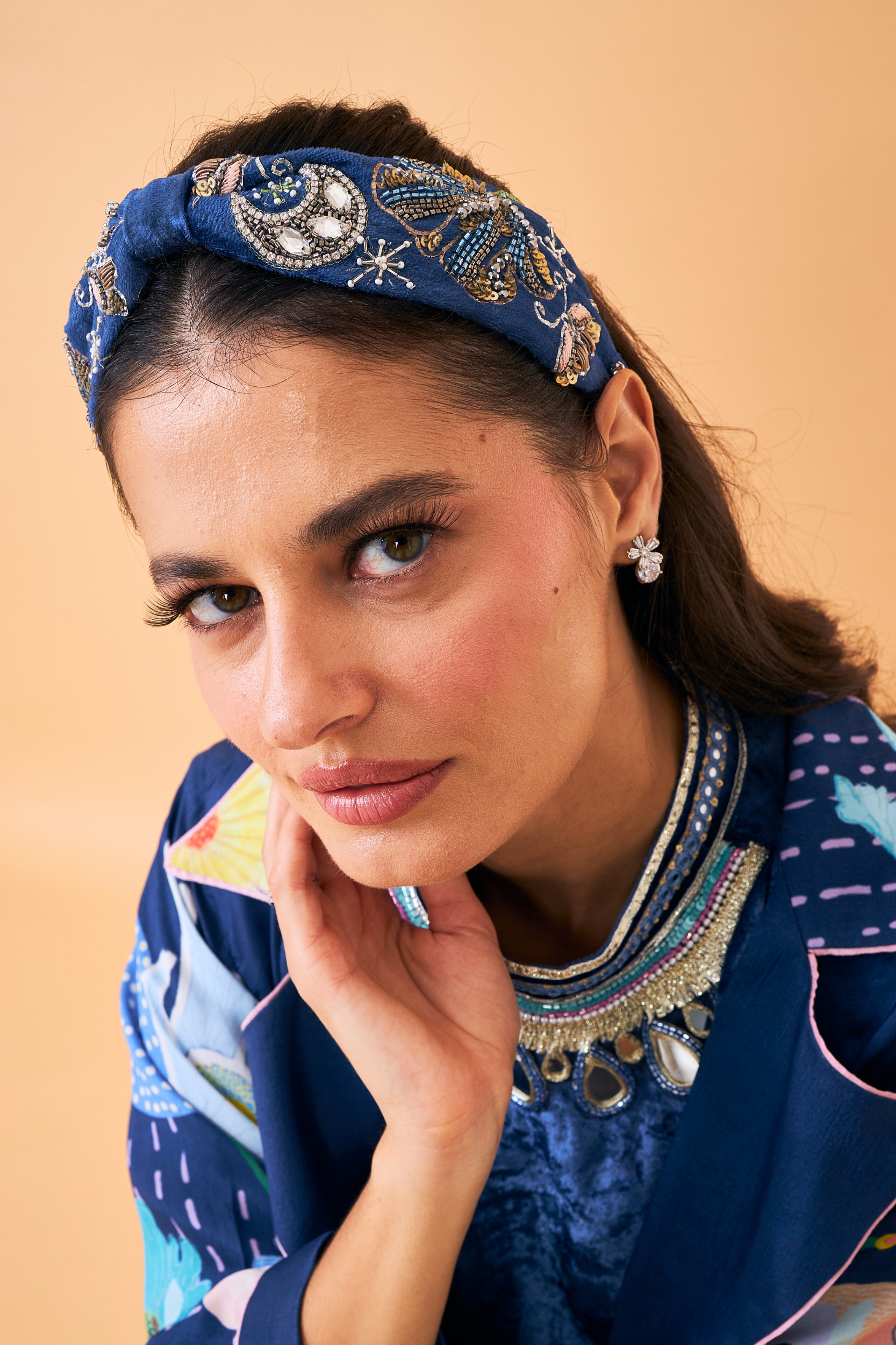 The Sparrow Navy Long Dress features a deep navy velvet that gives the silhouette a sleek and sophisticated finish. Designed as a full-length dress with long sleeves, it is accented with delicate embroidery along the neckline for a refined touch. Best paired with the lightweight Sparrow printed coat, this look is effortlessly chic and perfect for elegant Festive evenings and special celebrations.
