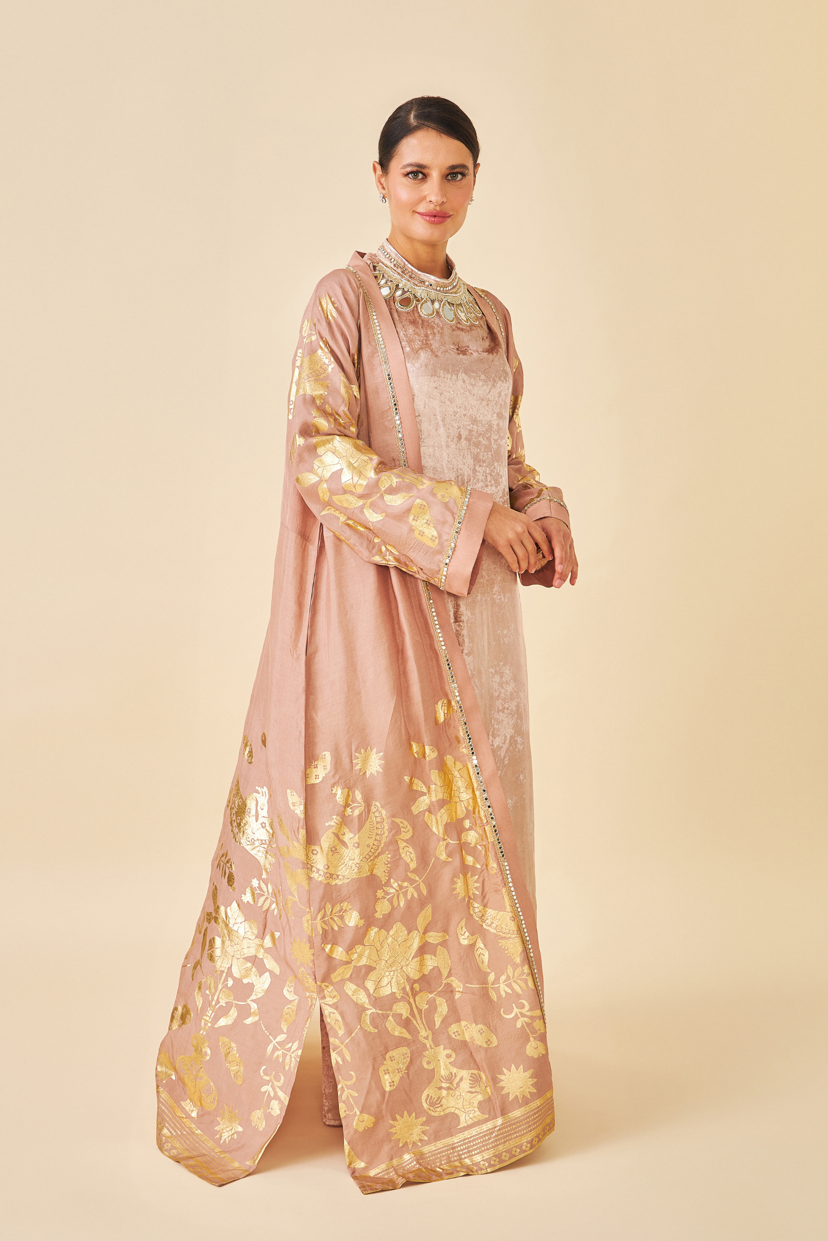 Tiffara Gold Coat with Velvet Long Dress - Mom & Me